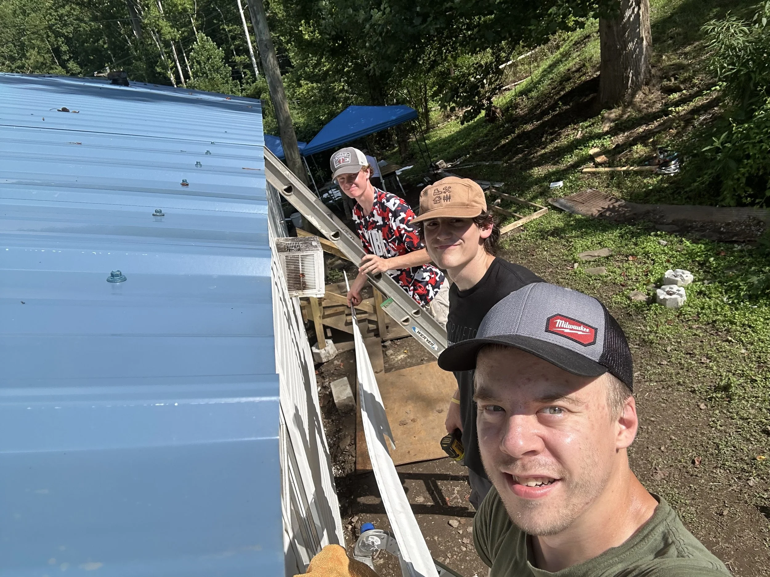 We fixed a little work from the previous group, finished some roofing, and turned our attention to completely siding a mobile home, including a complete install of facia and soffit. Once the end of that project was in sight, a few peeled off to assist another crew finishing up some interior door installation, framing, and electrical work, and a few other punch-list items.